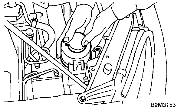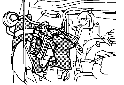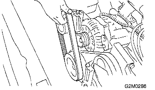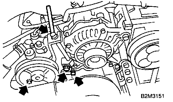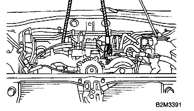 CAUTION: Be careful not to damage adjacent parts or body panels with crank pulley, oil level gauge, etc.