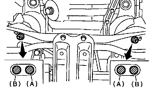 12) Tighten nuts which install front cushion rubber onto crossmember.