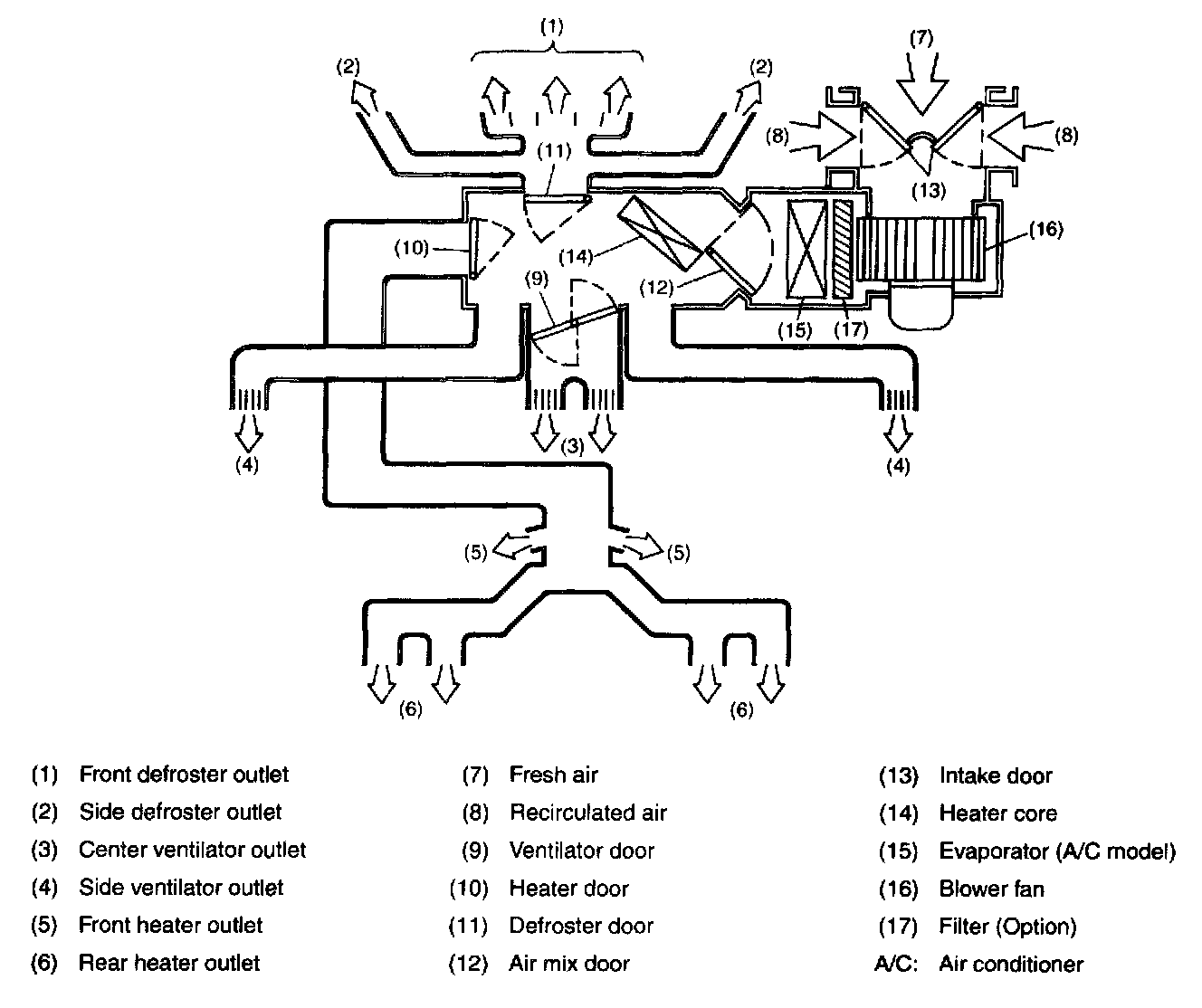 All models are equipped with front side window defrosters. An optional filter is provided in front of the evaporator inlet.