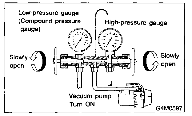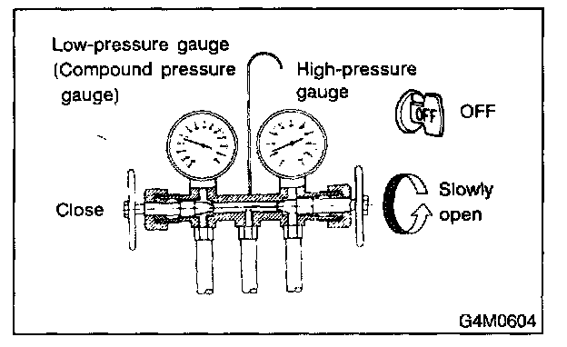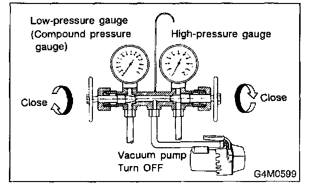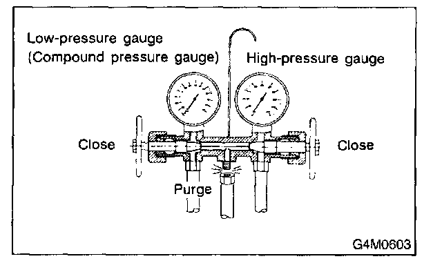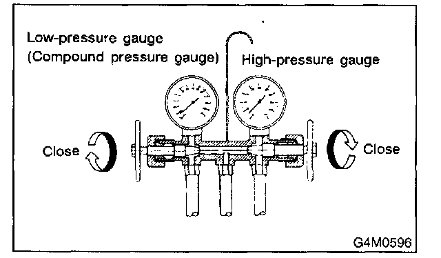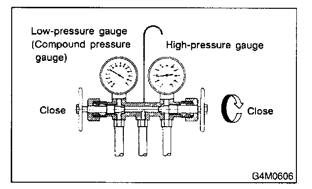 1. Close the valves on low-/high-pressure sides of the manifold gauge.