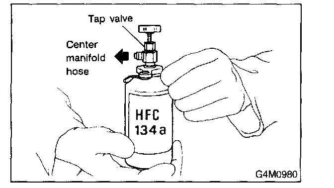 9. Following the can tap operation manual instructions, install it to the refrigerant can.