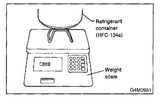 11. When a 13.6 kg (30 lb) refrigerant container is used, measure the refrigerant amount in use using a weighting scale.