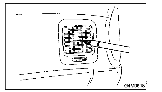 12. Turn the ignition key to ON position, and run the blower at high speed for 1 minute. Stop the blower to check the ventilation grille on the instrument panel. While moving the tester closer to the grille, run the blower for 1 or 2 seconds, then stop it. Check the grille at that point for at least 10 seconds.