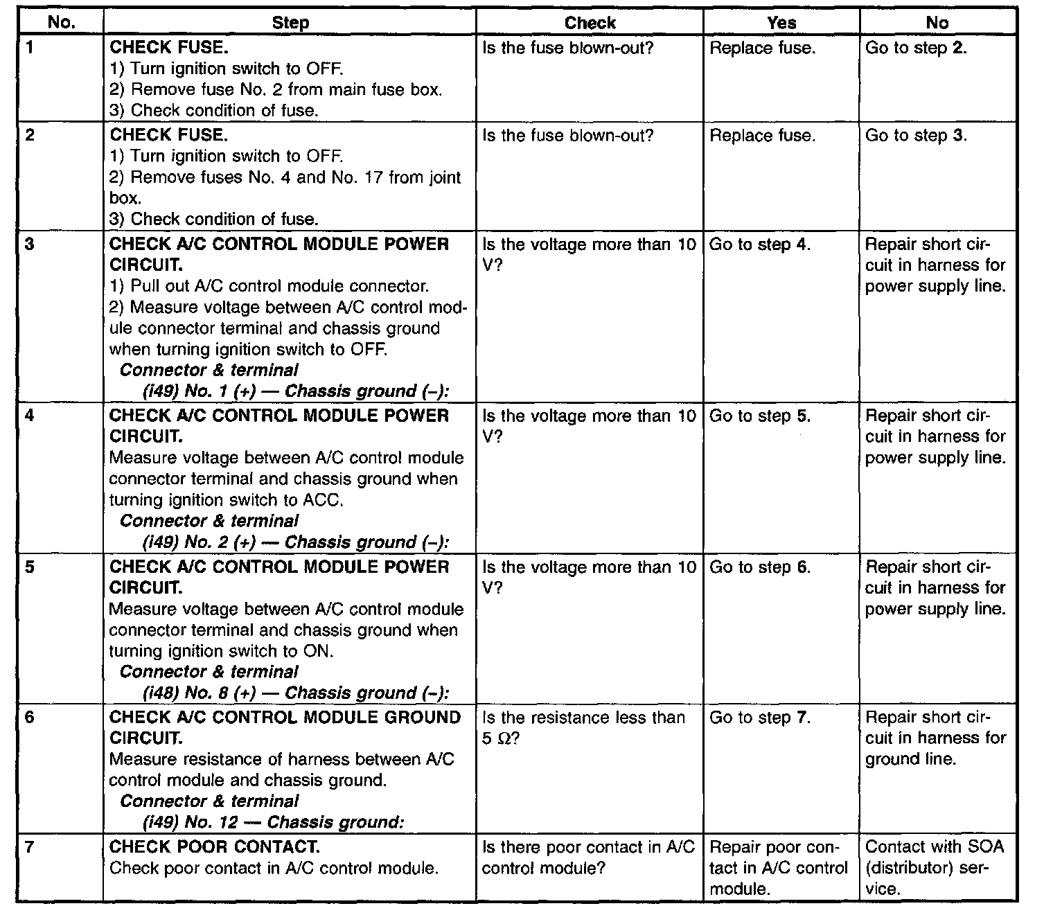 - Self-diagnosis system does not operate.