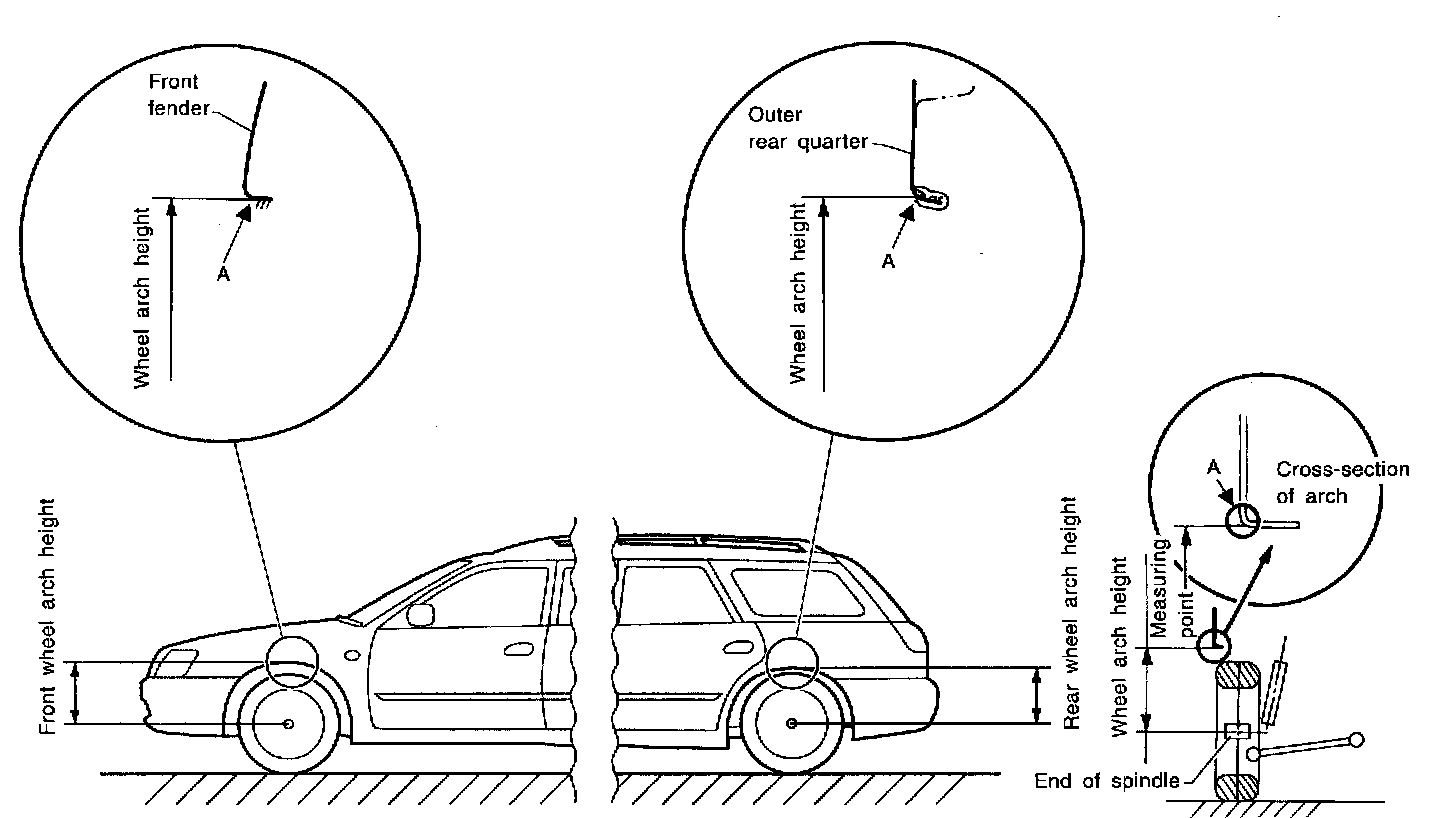 5. Measure distance between measuring point "A" and center of wheel.