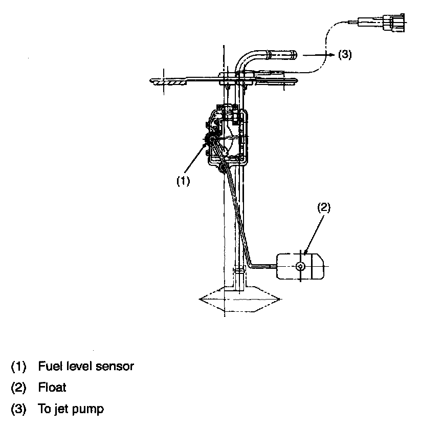 This sensor detects the level of the fuel in the sub-compartment (the compartment in which the fuel pump is not located) and acts as part of the fuel transfer line when the jet pump is in operation to maintain the fuel in both compartments at the same level.