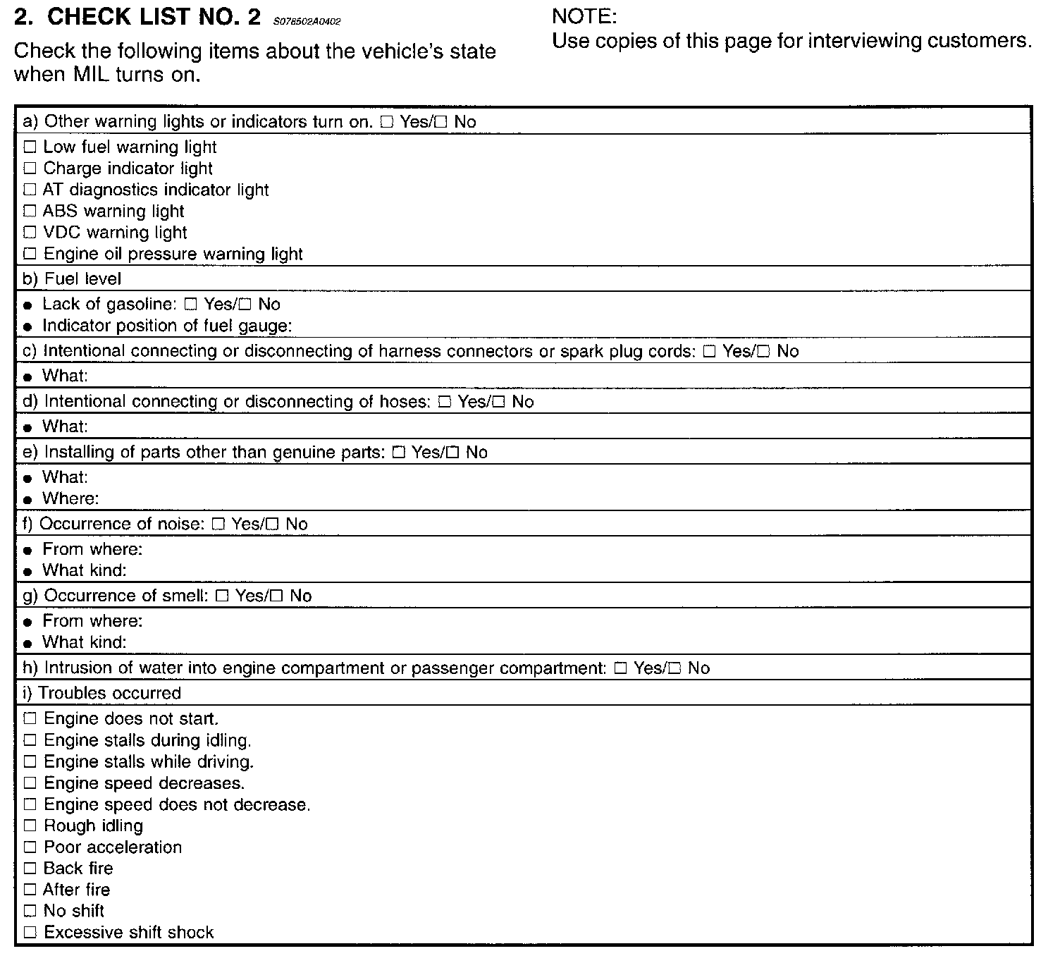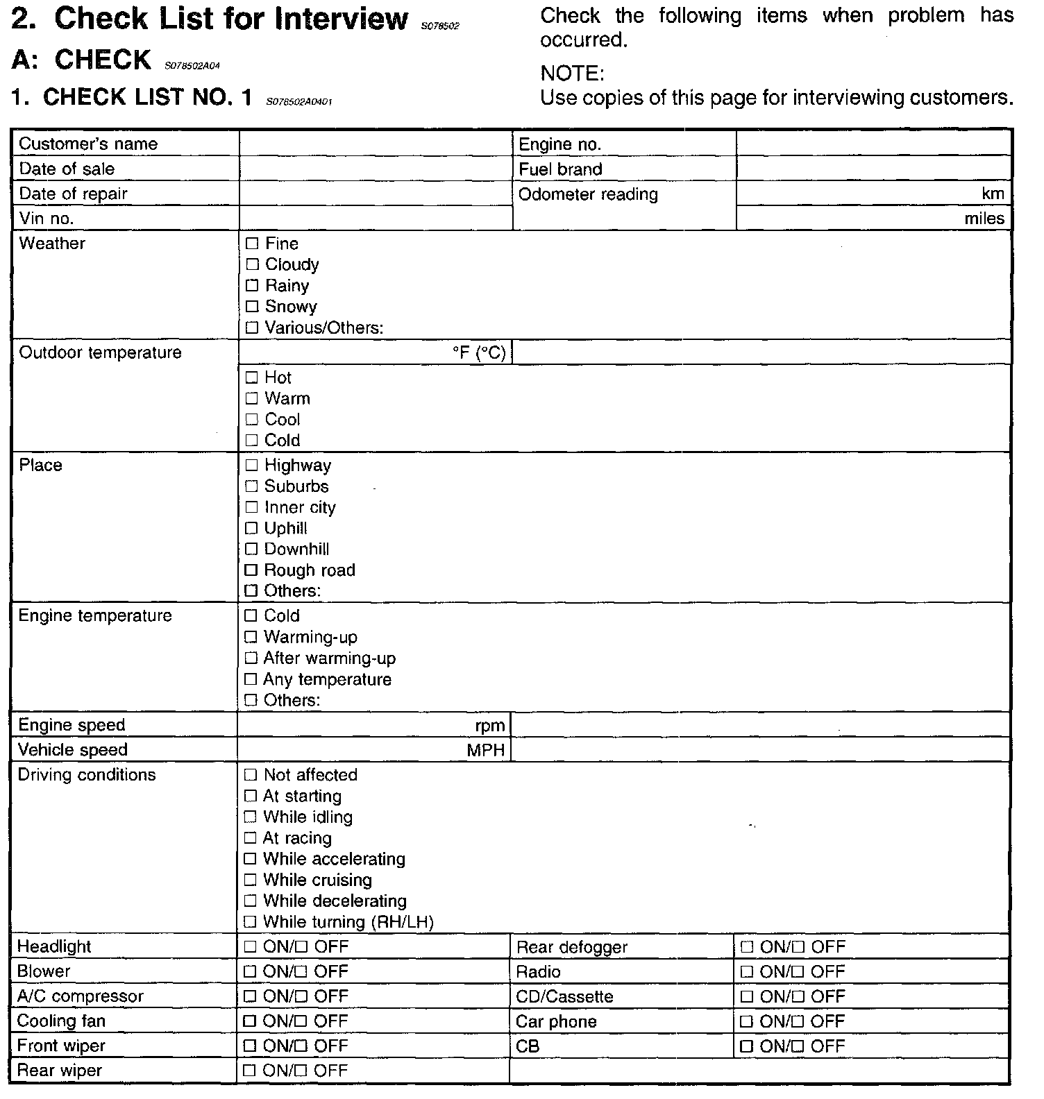 Customer Check List For Interview