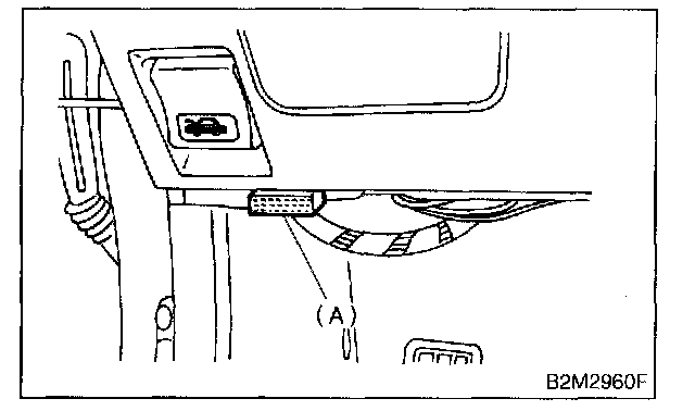 2. Open the cover and connect the OBD-II general scan tool to the data link connector (A) located in the lower portion of the instrument panel (on the driver's side).