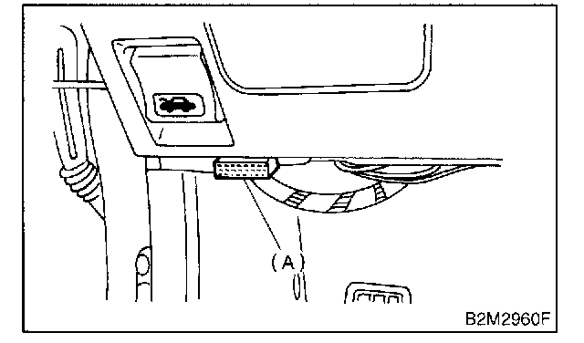 3. Connect test mode connector (A) at the lower side of the instrument panel (on the driver's side), to the side of the center console box.