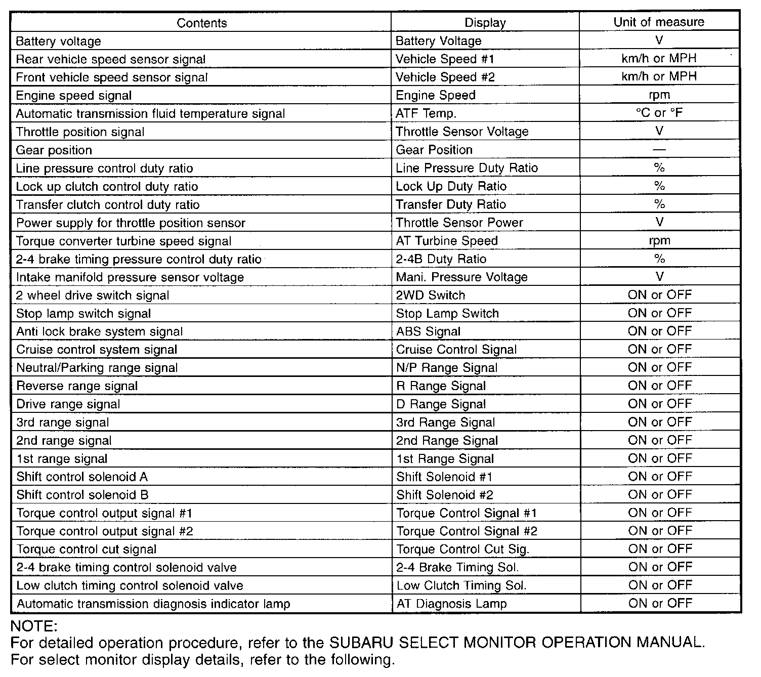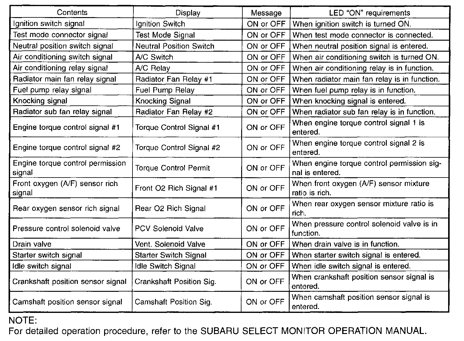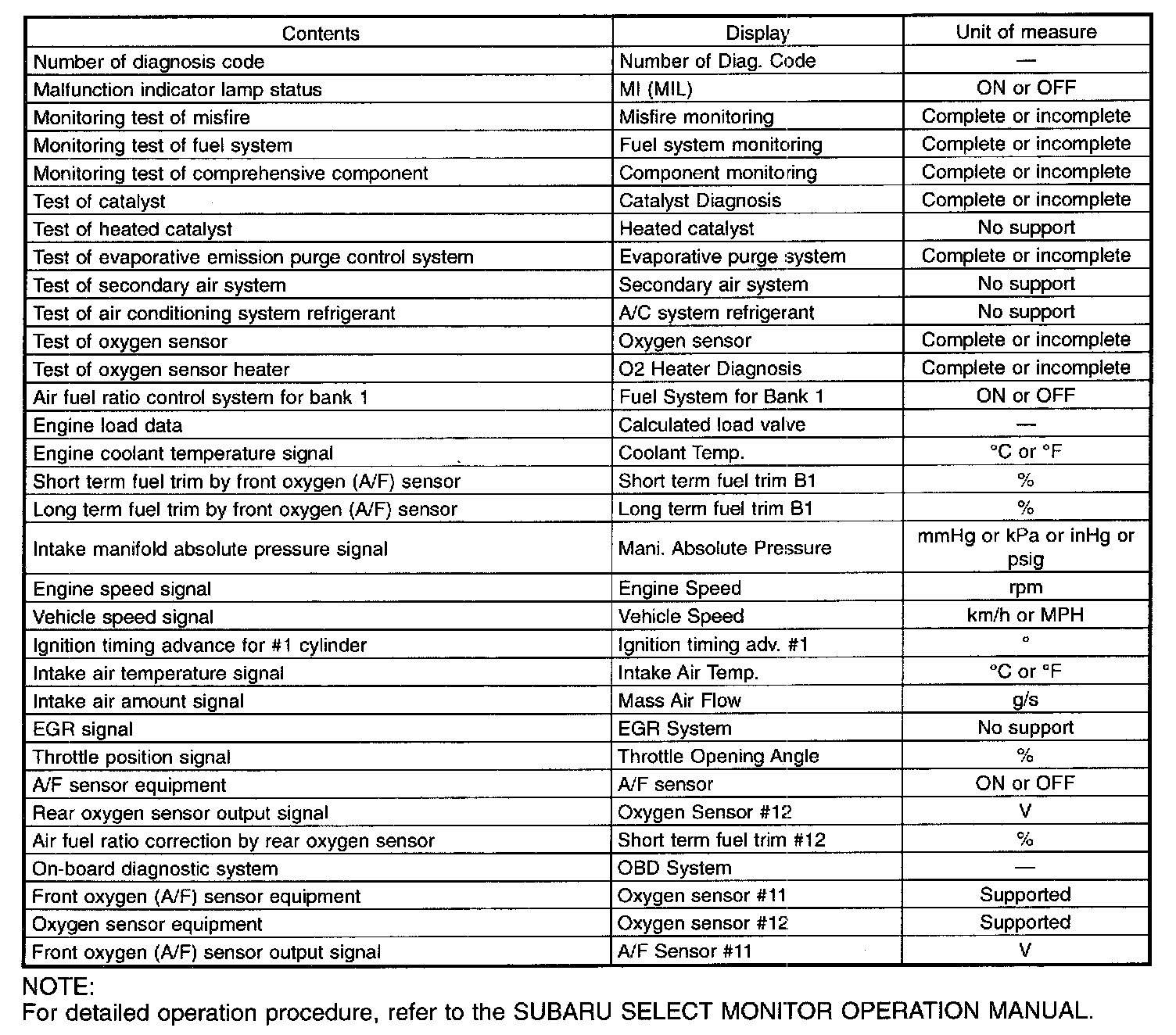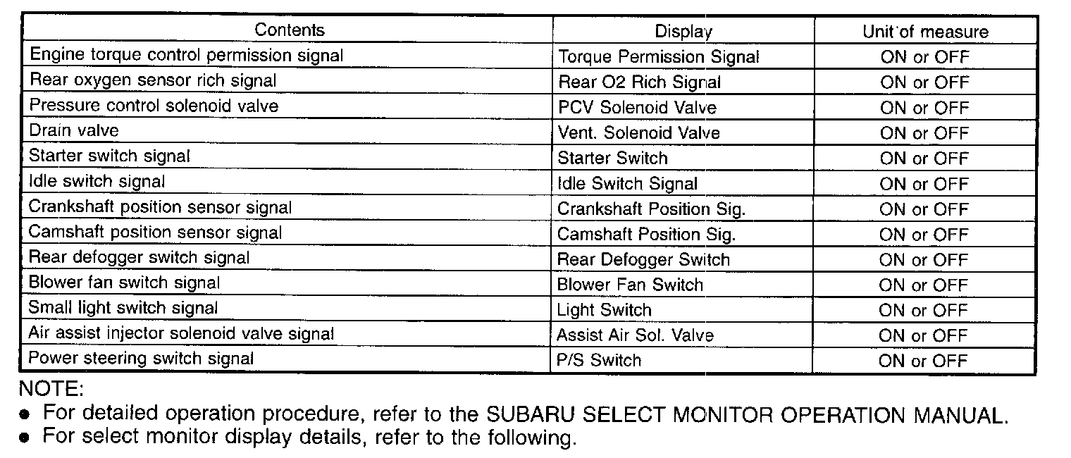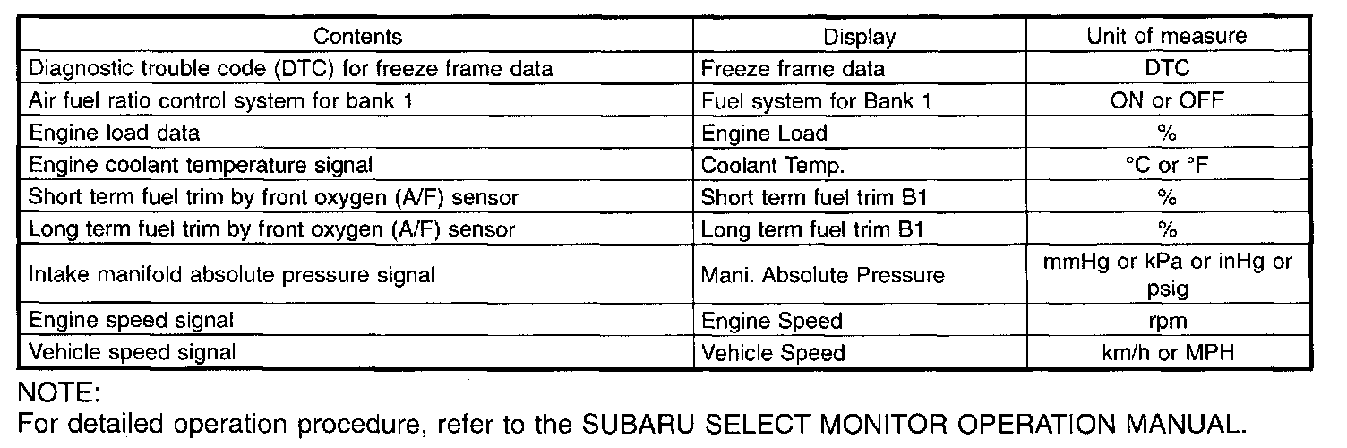 - For detailed operation procedure, refer to the SUBARU SELECT MONITOR OPERATION MANUAL.