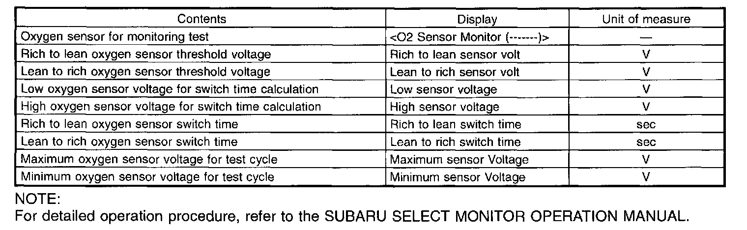 READ OXYGEN SENSOR MONITORING TEST RESULTS DATA FOR ENGINE. (OBD MODE)