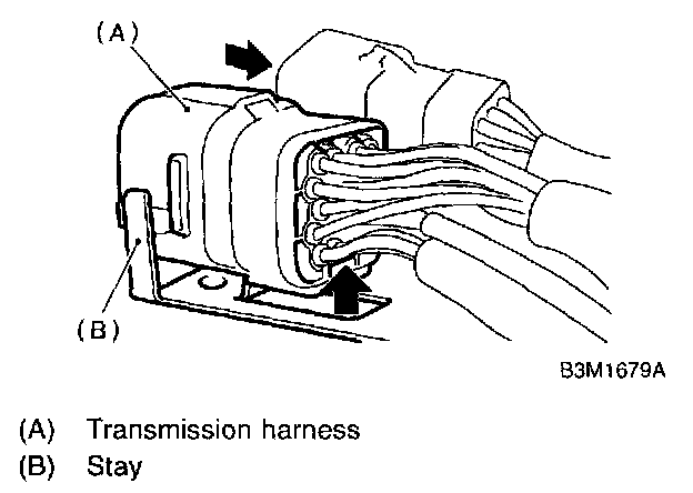 3. Disconnect transmission harness connector from stay.