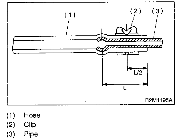 2. Connect fuel delivery hose to pipe with an overlap of 20 to 25 mm (0.79 to 0.98 in).