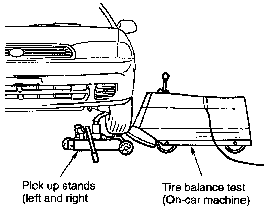 1. Raise Vehicle so that left and right wheels to be checked clear the floor. Support wheels using pick-up stands.