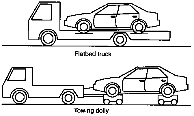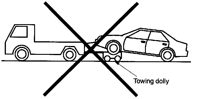 - Do not tow Vehicle with only front or rear wheels placed on towing dolly or flat-bed truck. This may degrade viscous coupling performance or cause Vehicle to jump off dolly or truck.