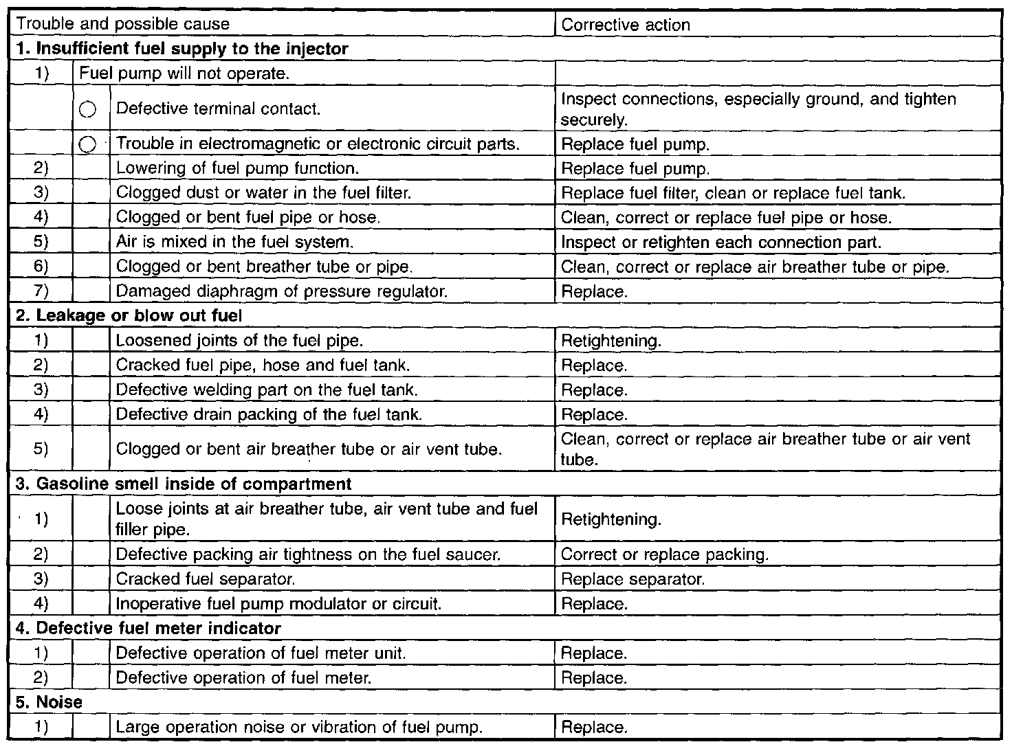 When water condensation is notched in the fuel filter, drain water from both the fuel filter and fuel tank or use a water removing agent (or antifreeze solution) in the fuel tank.