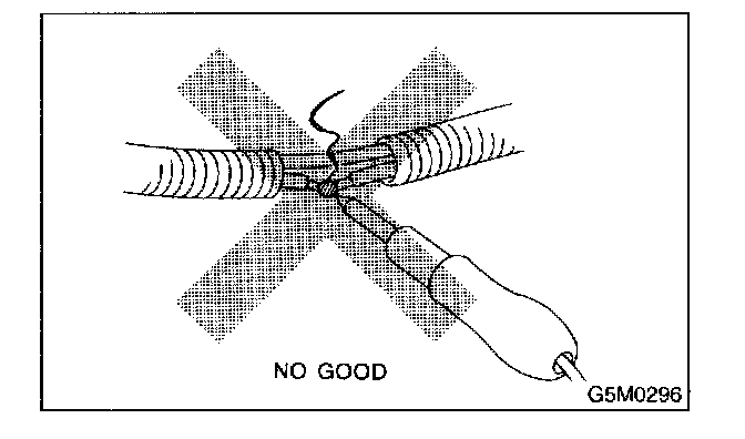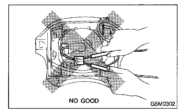 If any damage, opening, or rust is found on the airbag system wire harness, do not attempt to repair using soldering equipment. Be sure to replace the faulty harness with a new genuine part.