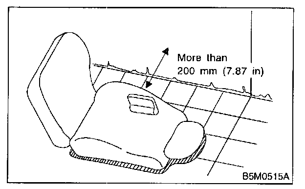 The removed front seat with the airbag module must be kept at least 200 mm (8 in) away from walls and other objects.