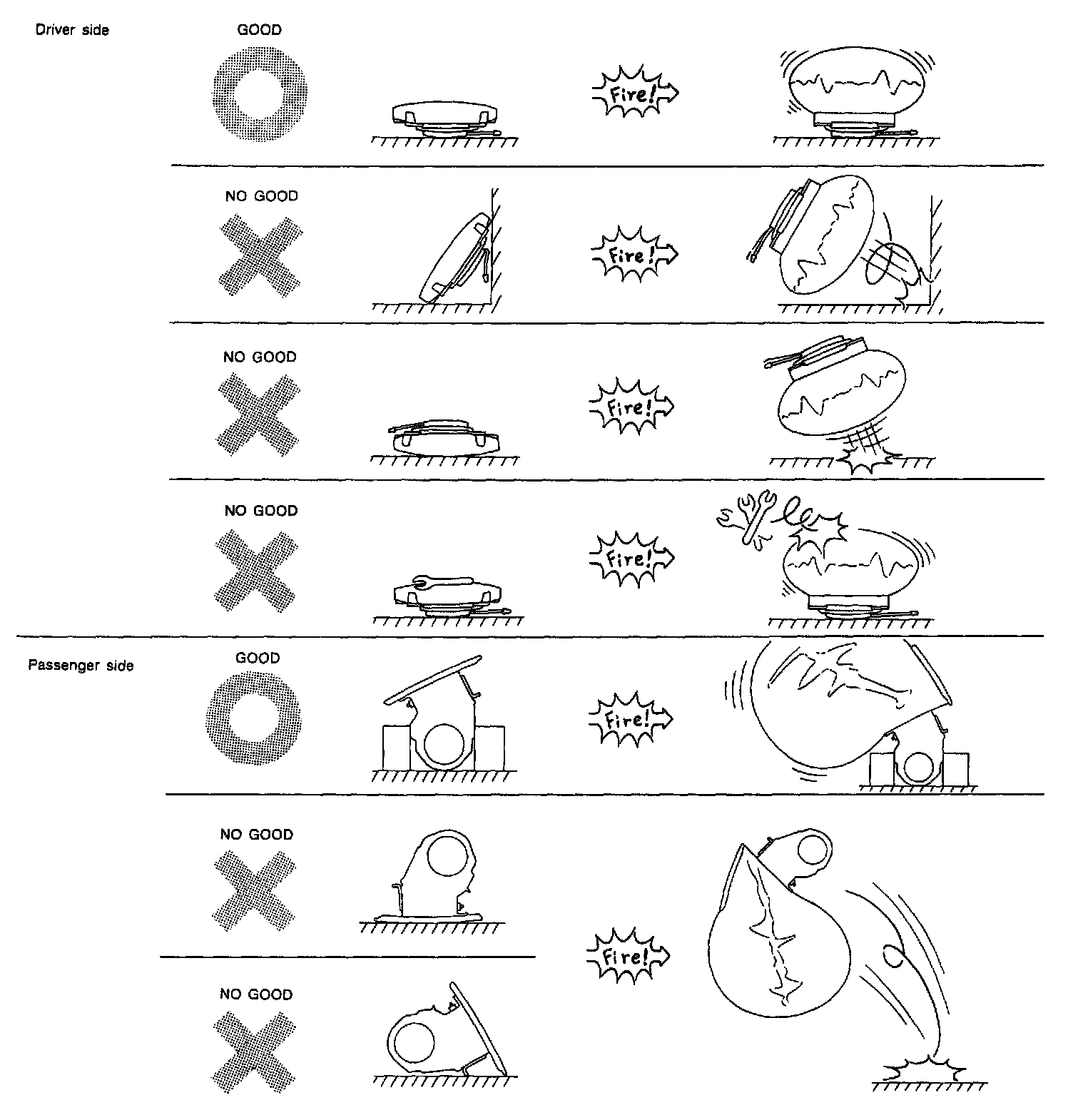 Either of the airbag modules for driver, passenger or side, must not be disassembled.