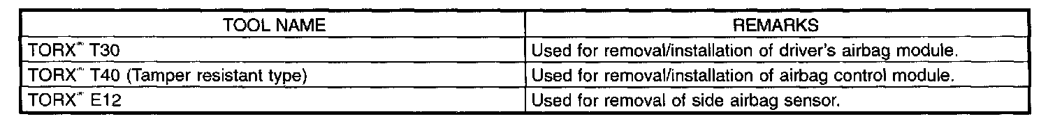 CAUTION: Be sure to use specified test harness A, F, G, H, K and I2 when measuring voltage, resistance, etc. of AIRBAG system component parts.