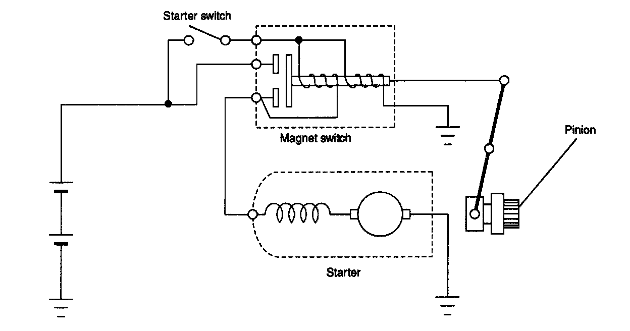 The starter is of a reduction type. Its output is 1.0 kW on the MT model and 1.4 kW on the AT model.