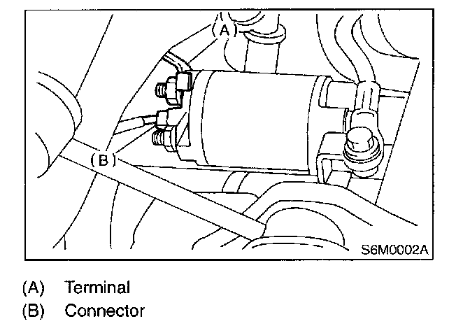 4. Disconnect connector and terminal from starter.