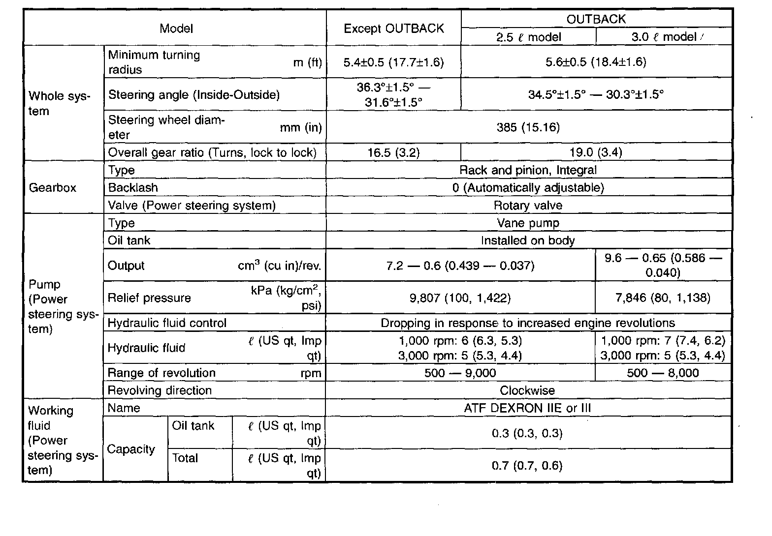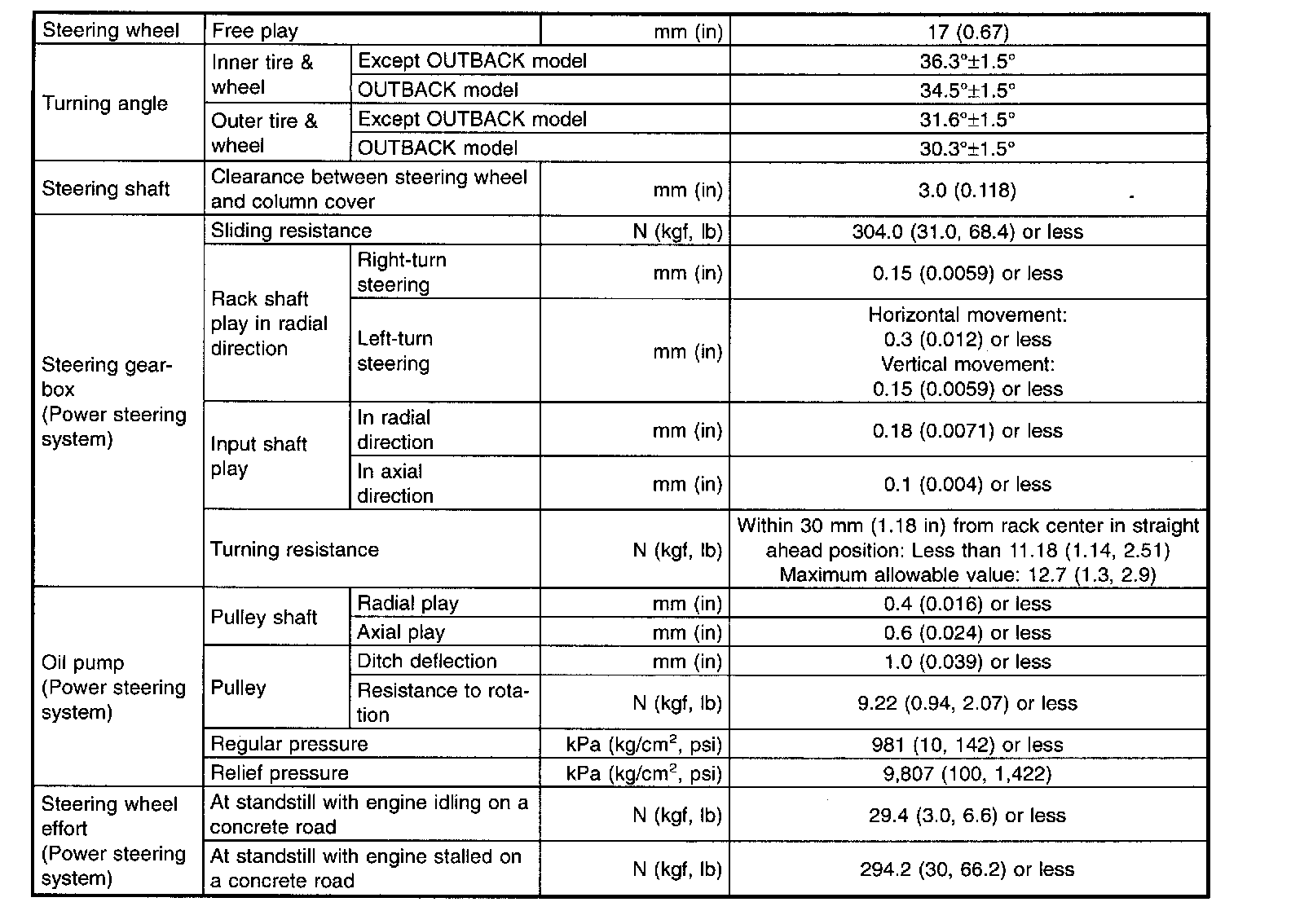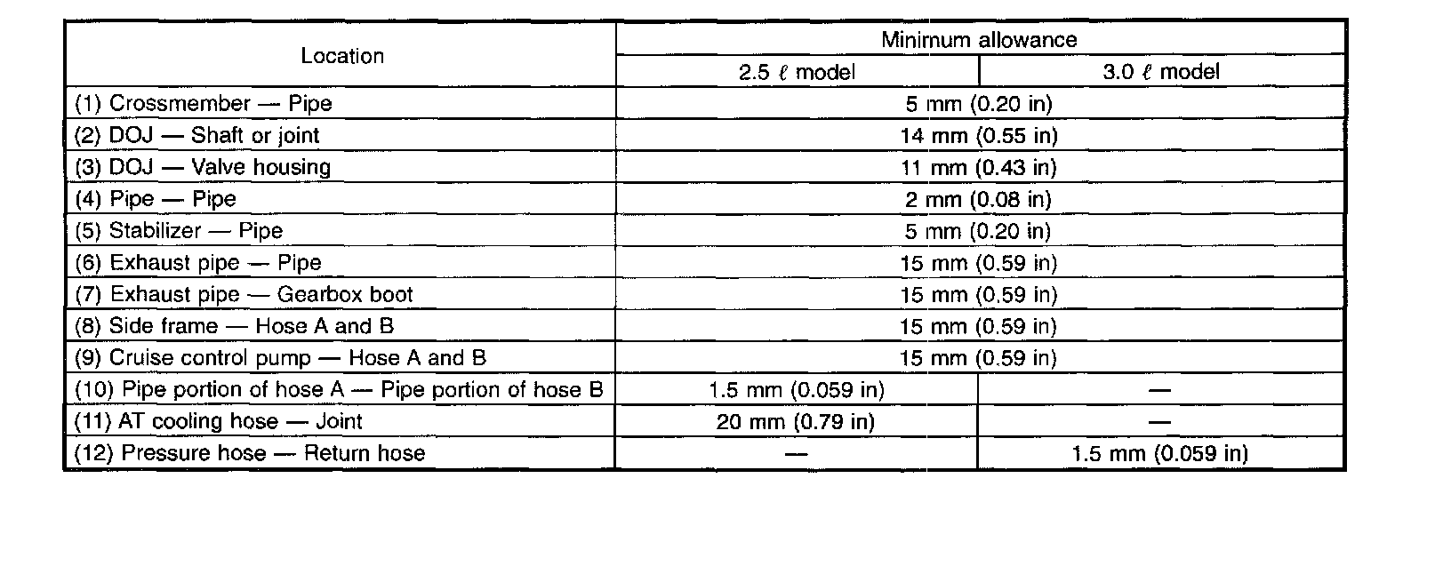 CAUTION: This table lists various clearances that must be correctly adjusted to ensure normal vehicle driving without interfering noise, or any other faults.