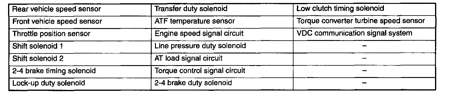 The on-board diagnostics system detects and stores in the form of a code a fault that has occurred in any of the following input and output signal systems.