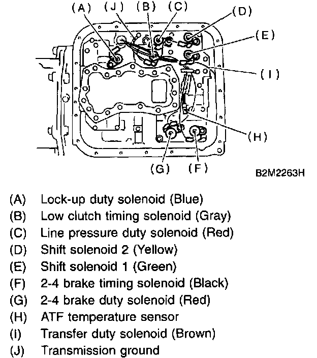 2. Remove the duty solenoids, solenoids and sensor from the lower valve body.