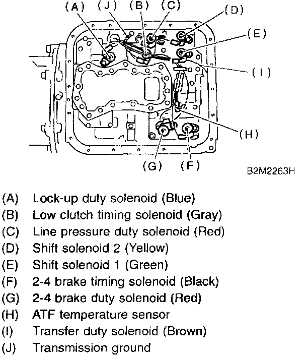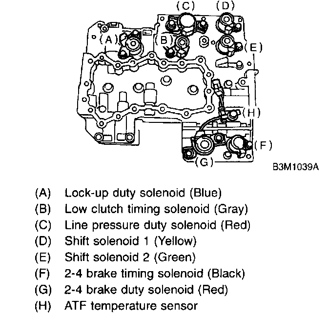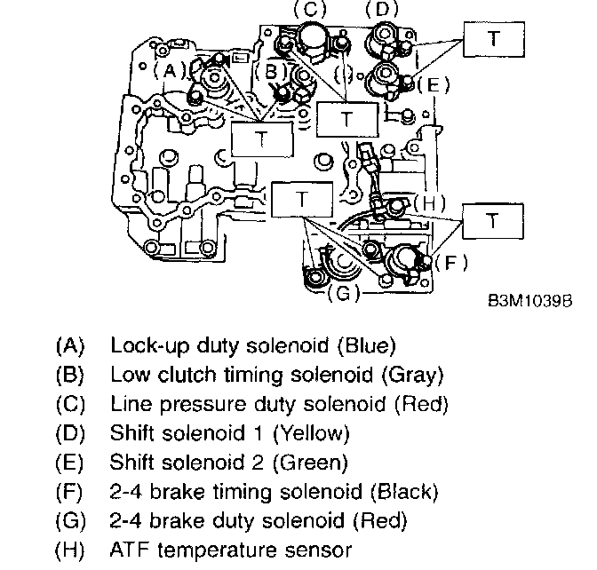 8. Install the sensor, solenoids and duty solenoids.
