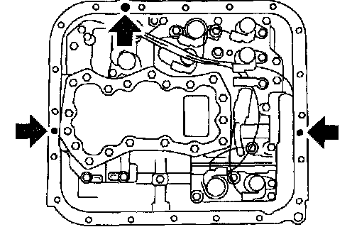 7. Besides bolt hole on transmission side, completely fill in liquid gasket at three holes.
