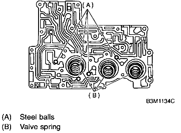 1. Install accumulator pistons, valve springs and steel balls to upper valve body.