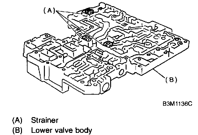 1. Remove oil strainer from lower control valve body.