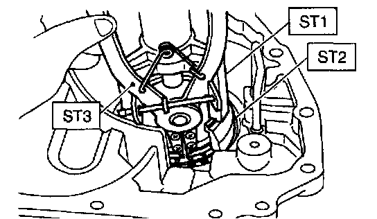 1. Using ST1, ST2, ST3 and a press, remove snap ring.