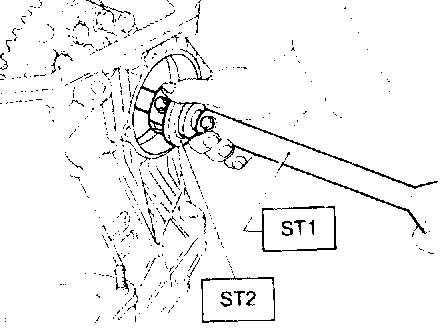 11. Extract the axle shaft with ST1 and ST2.