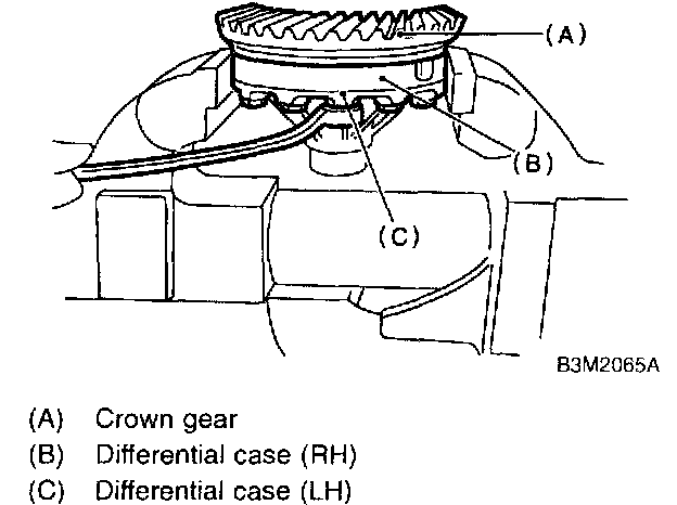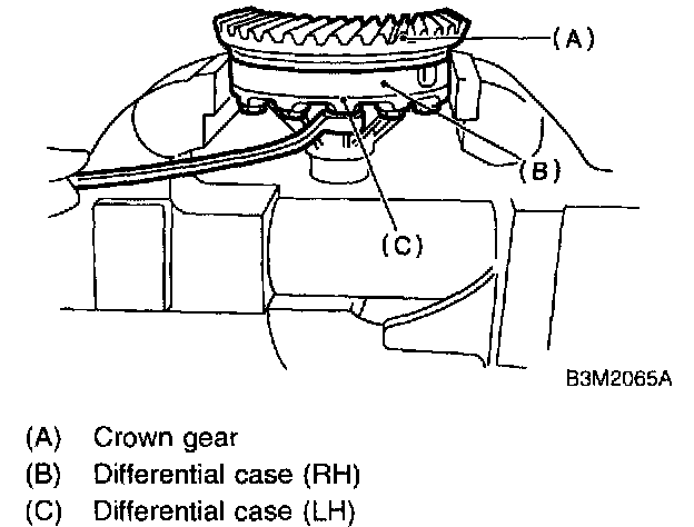 1. Install the differential assembly to the case, paying special attention not to damage the inside of the case (particularly, the differential side retainer contact surface).