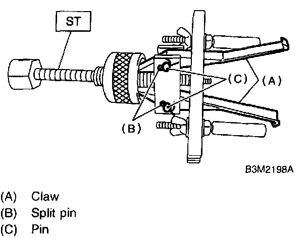 1. Using a press and ST, remove the taper roller bearing.