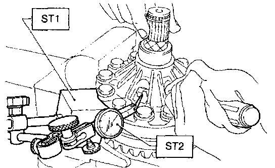 4. Rotate the drive pinion several times with ST1 and ST2.
