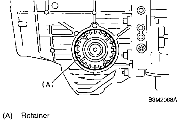 ^ Be careful not to damage the retainer mounting hole of the torque converter clutch case.