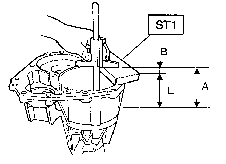 2. Measure the distance "L" from mating surface of extension case to multi-plate clutch (LSD) piston with ST.