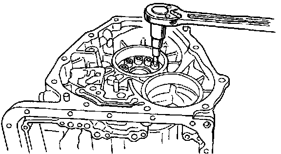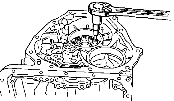 20. Turn the transmission case upside down, and then take out the socket bolts while holding the one-way clutch inner race with hand.