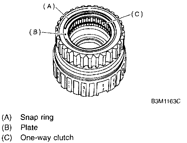 2. Install the one-way clutch, one-way clutch inner race and plate, and secure with the snap ring.