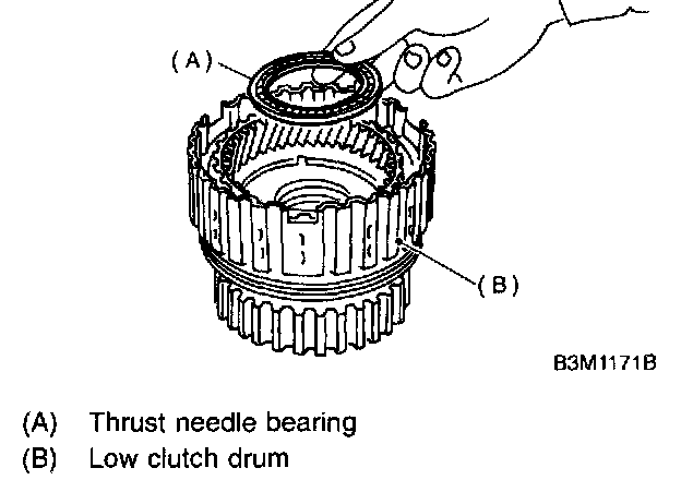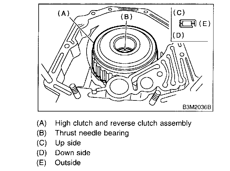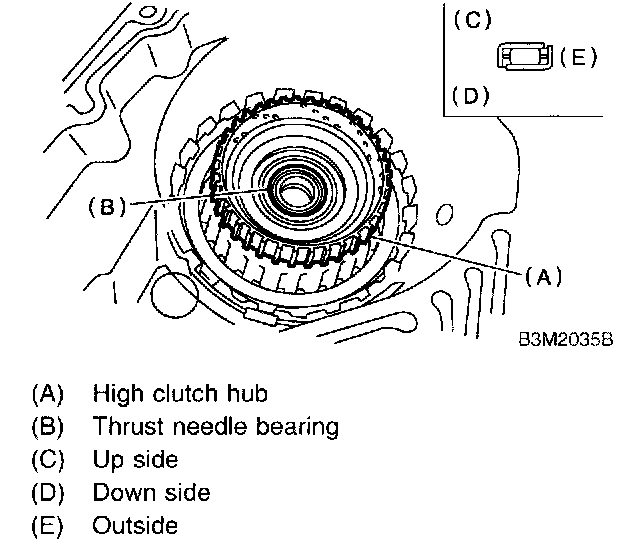 5. Install the high clutch hub and thrust needle bearing.