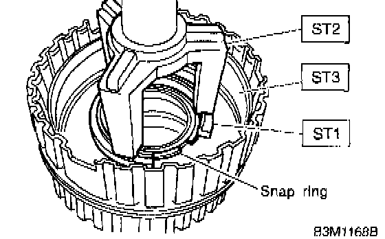 ^ After installing snap ring, remove ST1, ST2 and ST3.