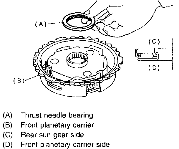 14. Install thrust needle bearing to rear planetary carrier.