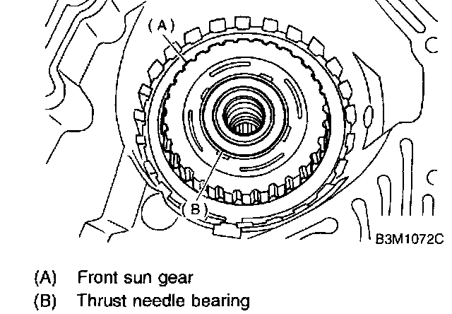 4. Install front sun gear and thrust needle bearing.