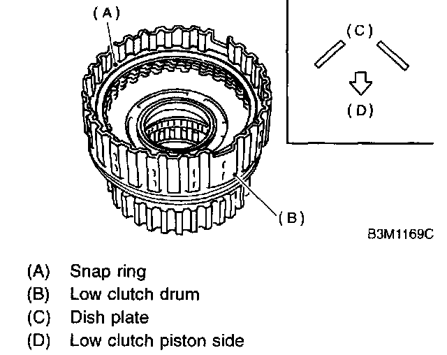 1. Remove snap ring from the low clutch drum.