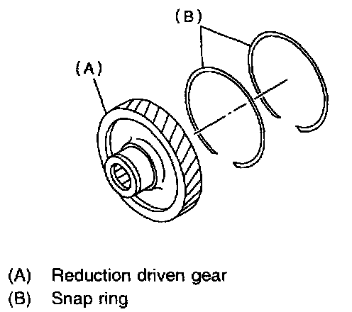 1. Remove snap ring from reduction driven gear.