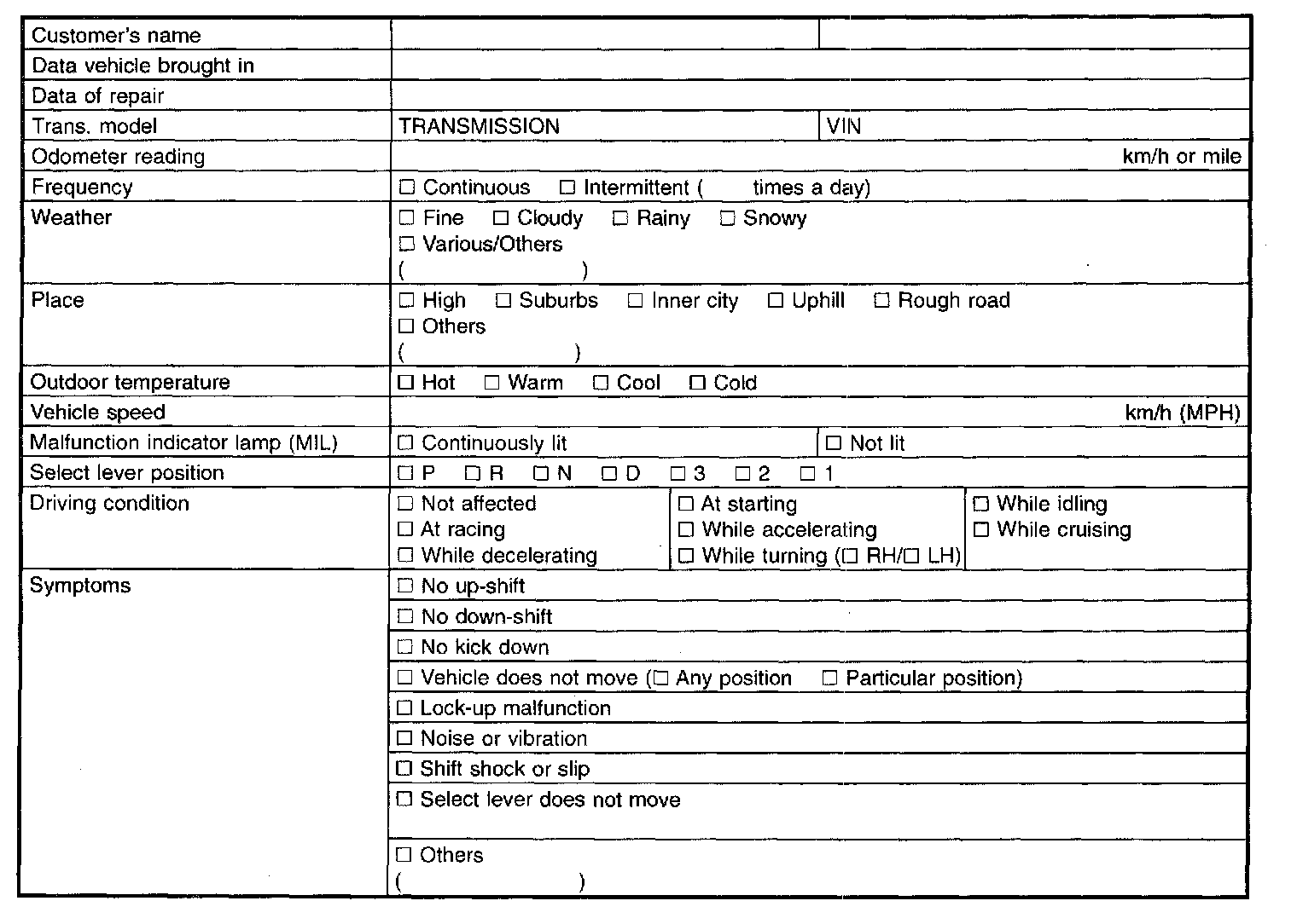 Check List for Interview CHECK Check the following items when problem has occurred. NOTE: Use copies for interviewing customers.