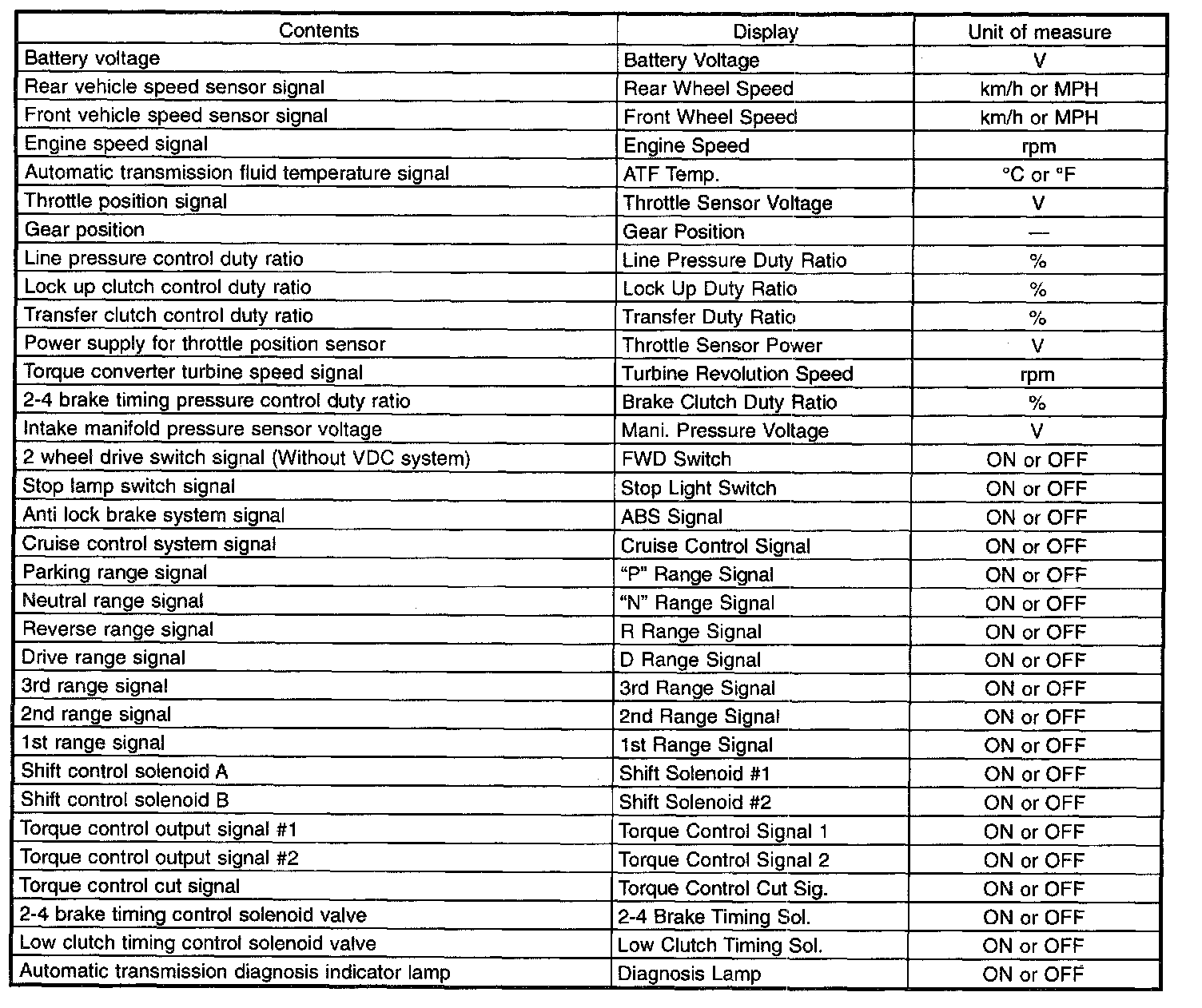 ^ For detailed concerning diagnostic trouble codes, refer to the DIAGNOSTIC TROUBLE CODE LIST (DTC).